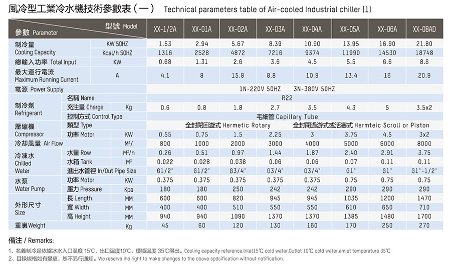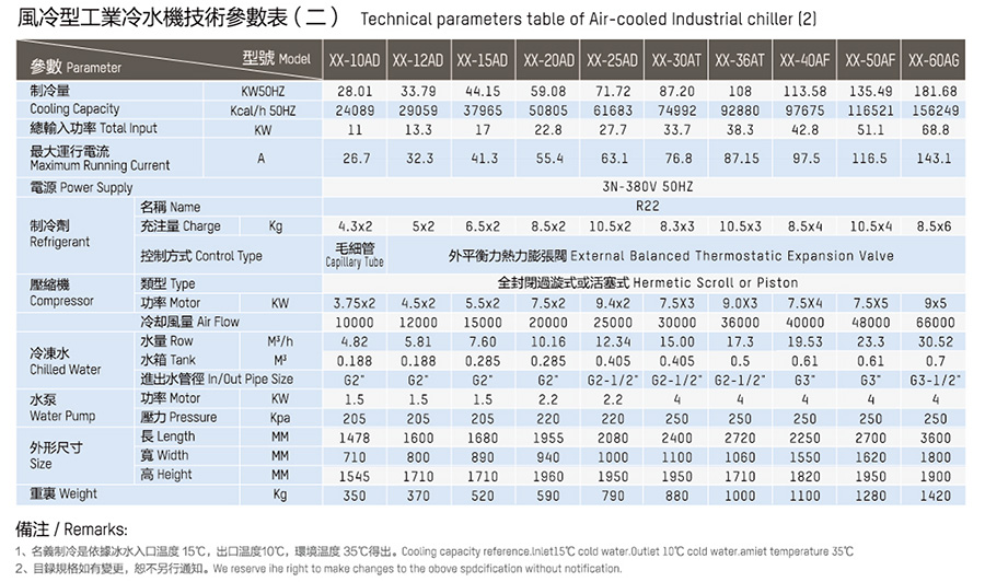 包括電源部分和自動控制部分。電源部分是通過接觸器,對壓縮機(jī)、風(fēng)扇、水泵等供應(yīng)電源。自動控制部分包括溫控器、壓力保護(hù)、延時器、繼電器、過載保護(hù)等相互組合達(dá)到根椐水溫自動啟停,保護(hù)等功能。風(fēng)冷冷水機(jī)組的特點(diǎn) : 風(fēng)冷冷水機(jī)組都可以用在小系統(tǒng)上,大機(jī)組絕大部分都是水冷的。水冷初投資就主機(jī)而言,是比風(fēng)冷的少一點(diǎn).但加上冷卻塔和機(jī)房\電子水處理儀等,也少不到什么地方去!再說就長年運(yùn)行來說,水冷機(jī)組的制冷效率相對會下降,風(fēng)冷不會。風(fēng)冷冷水機(jī)組采用空氣冷卻方式,省去了冷卻水系統(tǒng)所必不可少的冷卻塔、冷卻水泵和管道系統(tǒng),避免水質(zhì)過差地區(qū)造成冷凝器結(jié)垢、水管堵塞,還節(jié)約了水資源,是目前冷水空調(diào)設(shè)備產(chǎn)品中,保養(yǎng)維修很經(jīng)濟(jì)、簡單的機(jī)種。 風(fēng)冷冷水機(jī)組比水冷冷水機(jī)組一次性投資要稍高,但是全年運(yùn)轉(zhuǎn)費(fèi)用要低于水冷式冷水機(jī)組,機(jī)房建筑費(fèi)用在各種空調(diào)冷熱源系統(tǒng)中為很少,維修保養(yǎng)費(fèi)用約為水冷式或鍋爐的一半費(fèi)用。 風(fēng)冷冷水機(jī)組的噪音和體積較水冷的大,只能安裝在室外。水冷機(jī)組大多安裝在地下室內(nèi)。小型冷水機(jī)技術(shù)參數(shù)表: